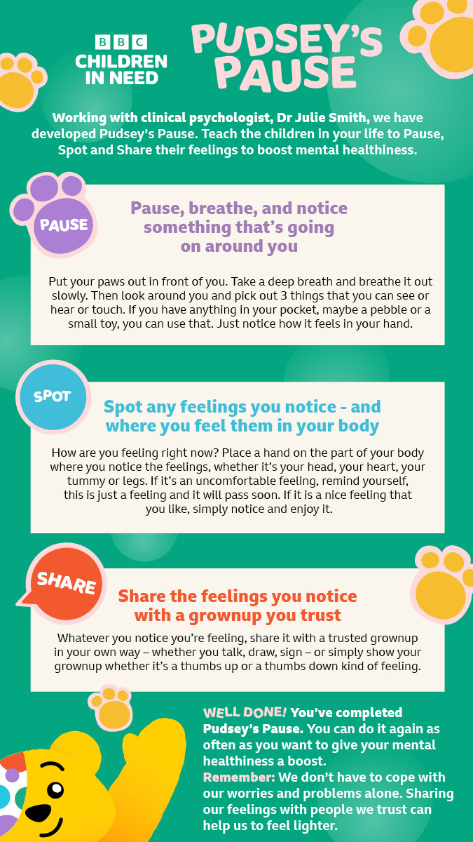 Working with clinical psychologist, Dr Julie Smith, we have developed Pudsey’s Pause.