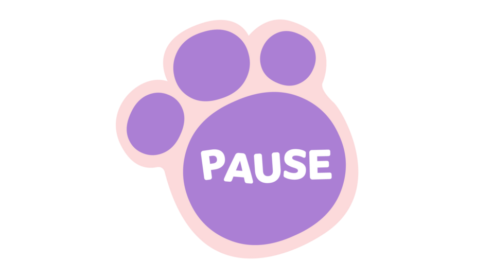Put your paws out in front of you. Take a deep breath and breathe it out slowly. Then look around you and pick out 3 things that you can see or hear or touch. If you have anything in your pocket, maybe a pebble or a small toy, you can use that. Just notice how it feels in your hand.