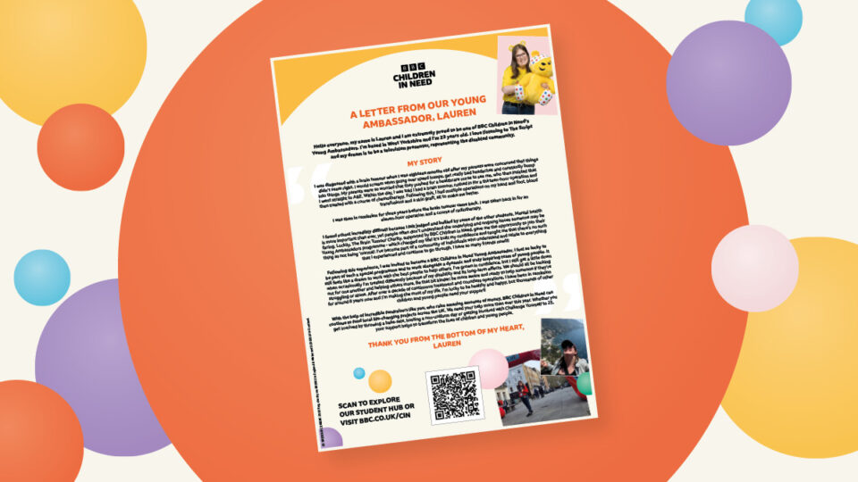 Hear first hand from one of our Young Ambassadors, Lauren, as she shares her personal story, how BBC Children in Need has supported her and why its more important than ever to fundraise.
